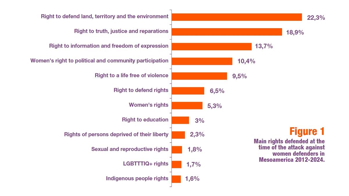 Over these 13 years, as a direct consequence the extractive capitalist model imposed on our territories, women defenders of land, territory and the environment have made up one of the collectives with the highest number of registered attacks, as observed by the finding that 22.3% of the total 43,186 attacks registered between 2012 and 2024 in Mesoamerica were perpetrated against sister defenders of these rights (Figure 1).