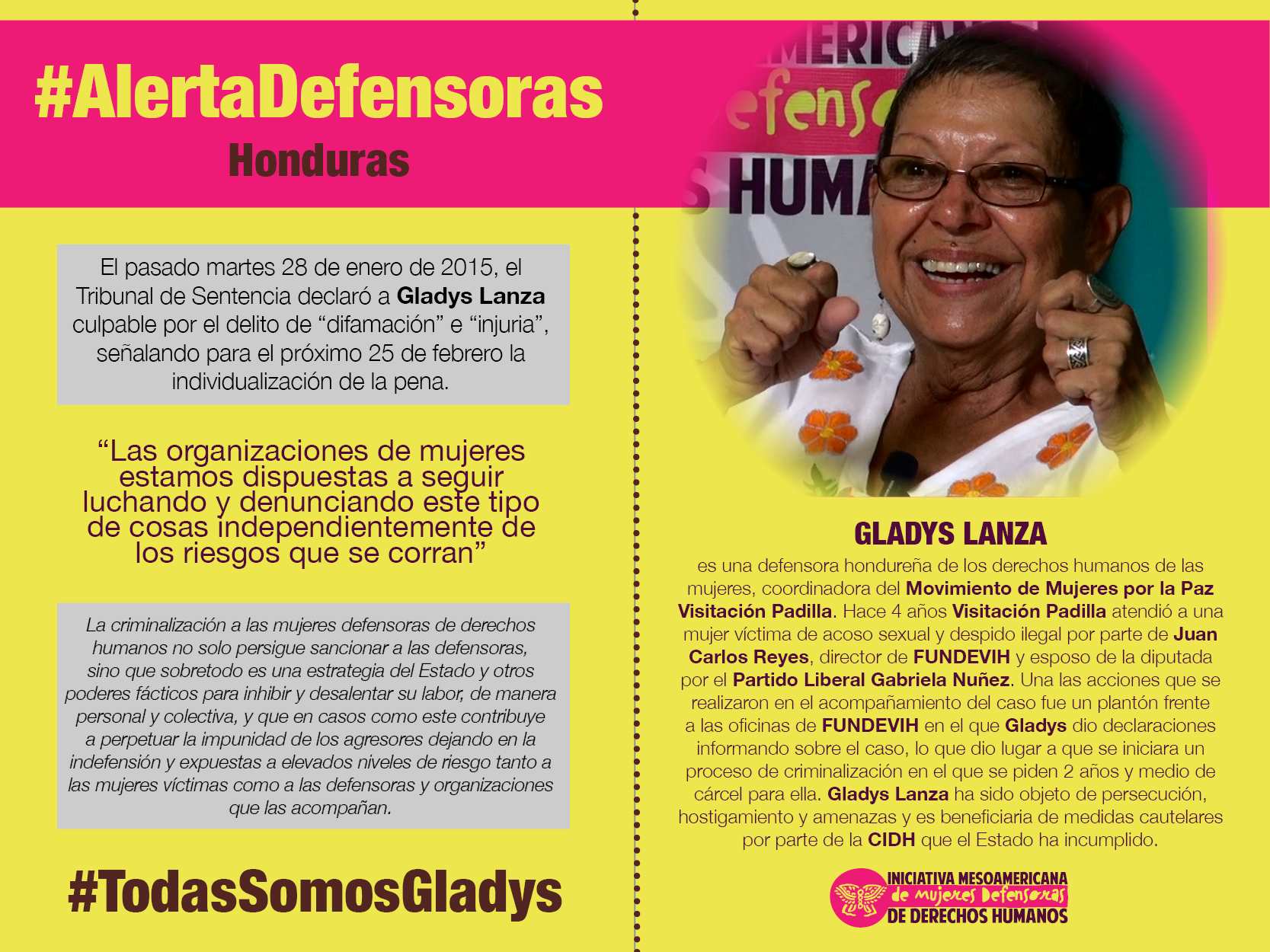 #AlertaDefensoras HONDURAS / Criminalización a la defensora Gladys Lanza