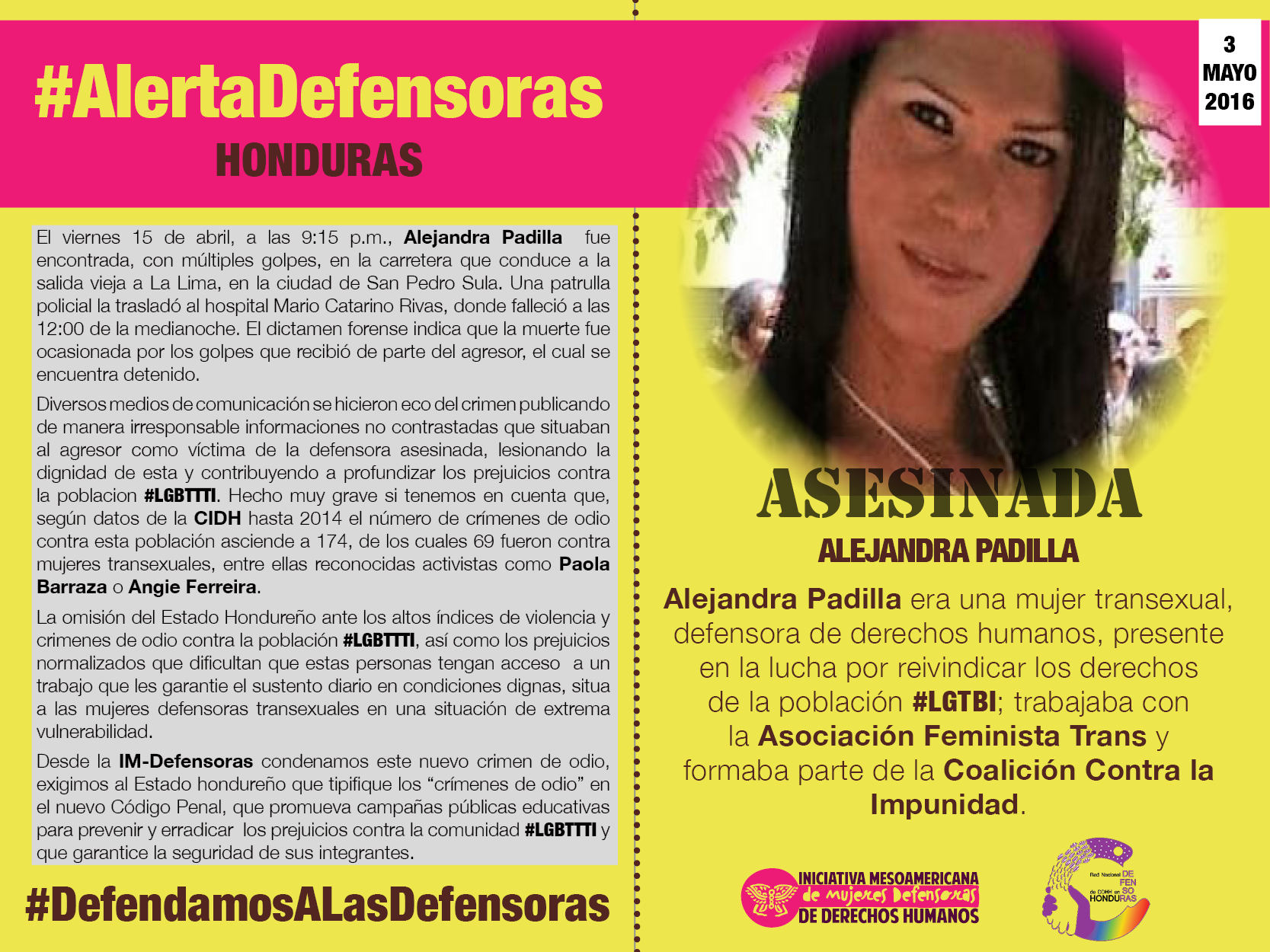 #AlertaDefensoras HONDURAS / Asesinan a Alejandra Padilla, de la Asociación Feminista Trans y la Coalición contra la Impunidad