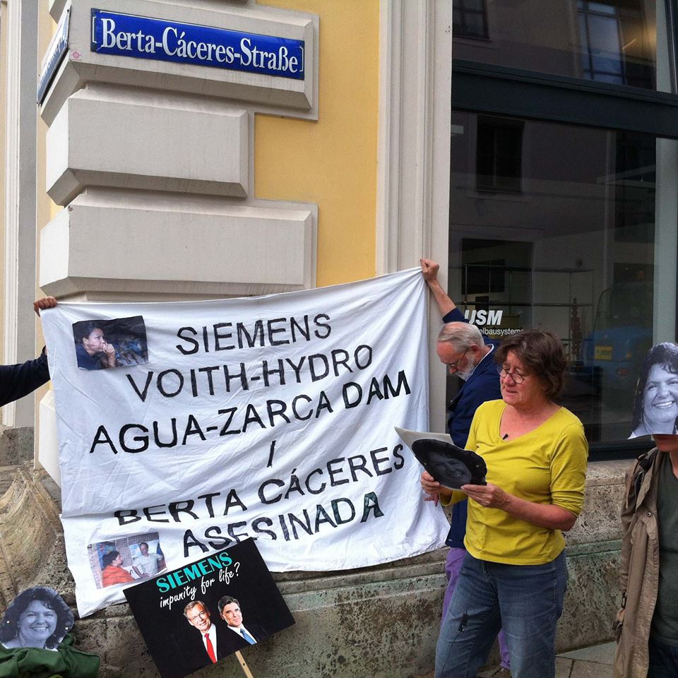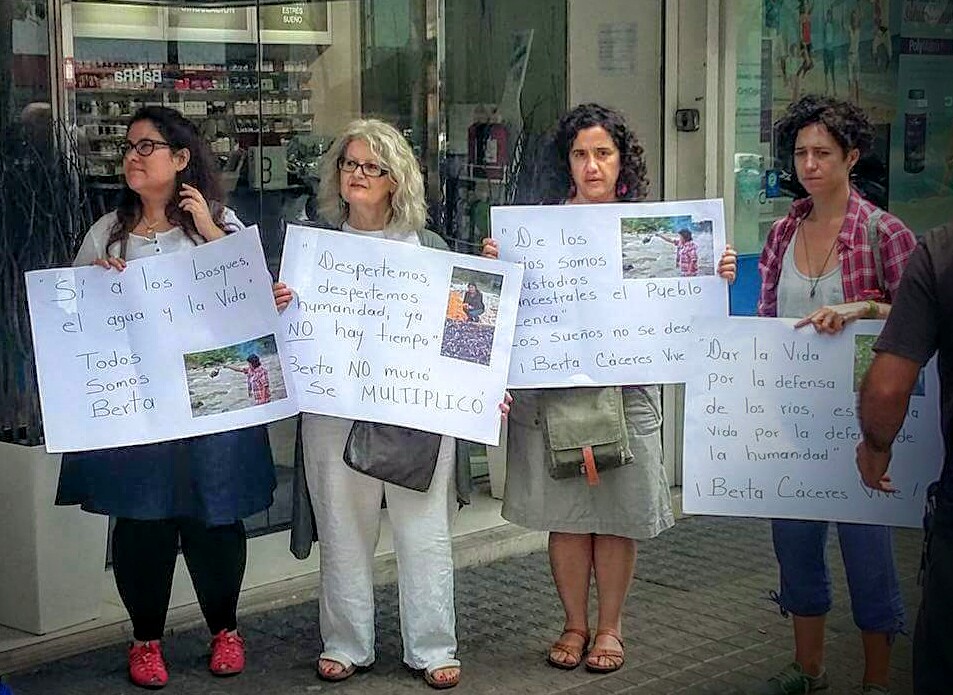 A lo largo de todo el huso horario Berta Cáceres se hizo presente en ciudades como Milan, Londres, Munich, Barcelona, Madrid, Valencia, París, Washington, Ottawa, Los Ángeles, México DF, San Cristobal de las Casas, Guatemala, San Salvador, Tegucigalpa, San Pedro Sula, San José de Costa Rica, Managua, Buenos Aires, Santiago de Chile, entre otras... mientras miles de personas manifestaban en diversos idiomas su reconocimiento al legado de Berta y su solidaridad con el COPINH y a través de las redes sociales.