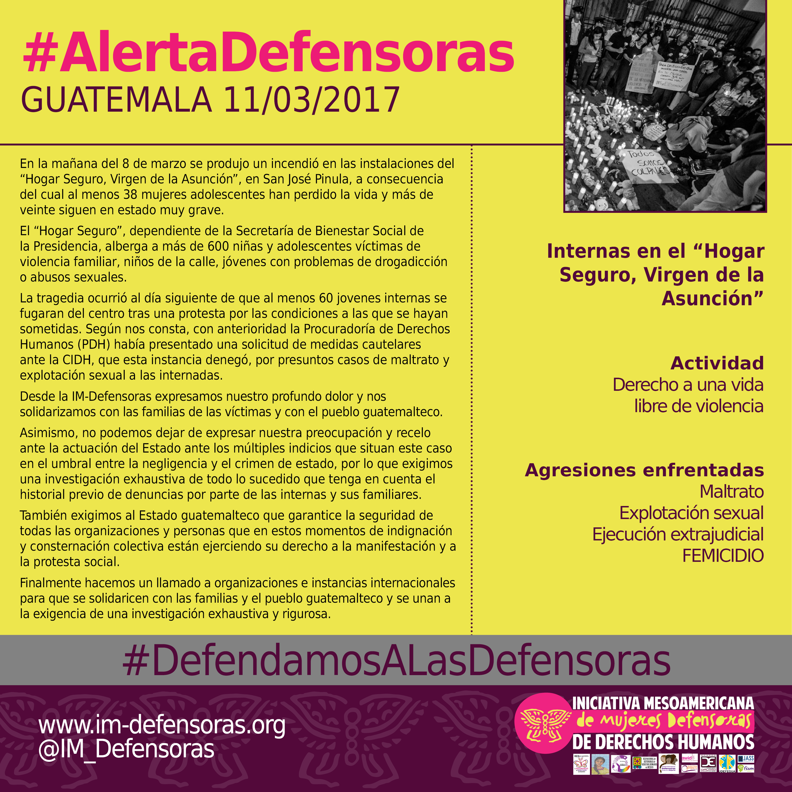 Desde la IM-Defensoras expresamos nuestro profundo dolor y nos solidarizamos con las familias de las víctimas y con el pueblo guatemalteco.