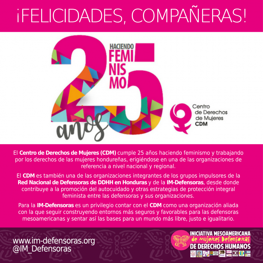Para la IM-Defensoras es un privilegio contar con el CDM como una organización aliada con la que seguir construyendo entornos más seguros y favorables para las defensoras mesoamericanas y sentar así las bases para un mundo más libre, justo e igualitario.