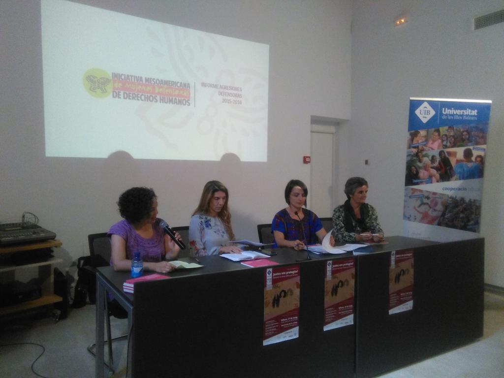 La gira concluyó el lunes 21 de mayo en Palma, capital de la isla de Mallorca, a donde acudimos invitadas por la Oficina de Cooperación de la Universidad de las Islas Baleares y donde tuvimos la oportunidad de reunirnos con el alcalde de la ciudad y, acompañadas por las defensoras Ruth Escribano (UIB) y Margalida Ramis (GOB Mallorca), presentar en un evento público nuestro Informe de agresiones a defensoras.