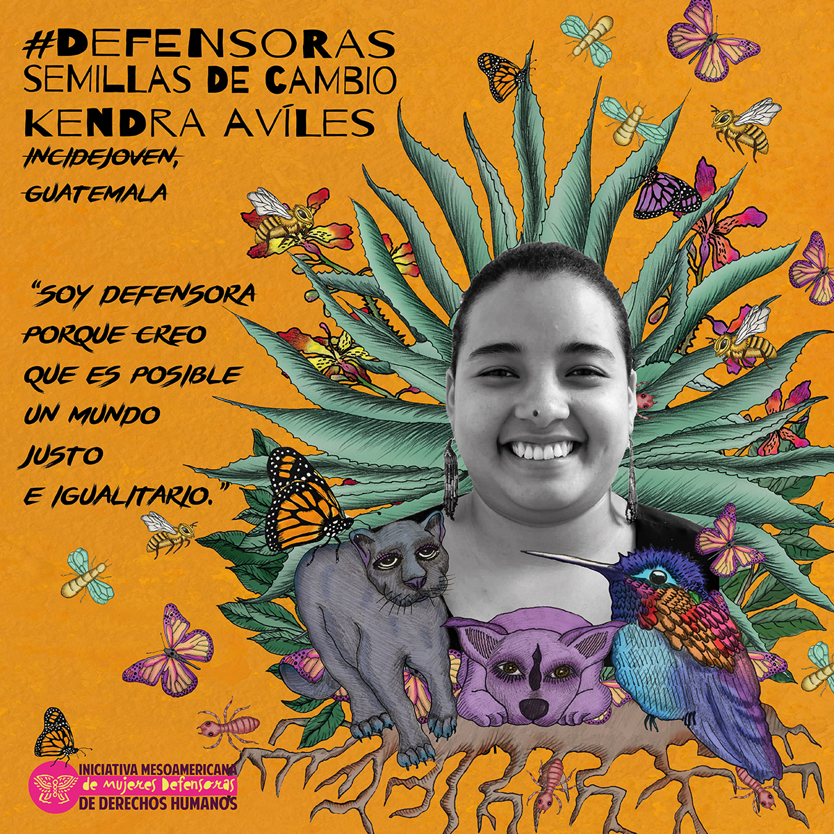 Kendra Avilés tiene 23 años y hace 7 que es defensora. Kendra trabaja para la promoción y defensa de los derechos sexuales y reproductivos de las juventudes en Guatemala desde la Asociación Red de Jóvenes Para la Incidencia Política -INCIDEJOVEN-, organización orientada a la incidencia política, la formación, la investigación y la comunicación.
