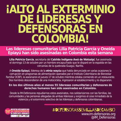 ¡Alto al exterminio de lideresas y defensoras en Colombia!