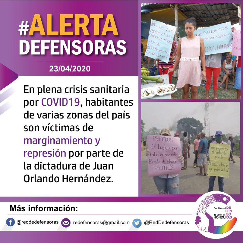 Desde la Red Nacional de Defensoras de Derechos Humanos en Honduras, denunciamos y condenamos enérgicamente estos hechos y responsabilizamos al gobierno de Juan Orlando Hernández por las constantes agresiones al pueblo hondureño que lucha por sobrevivir en un país donde impera la desigualdad, agravada en momentos como el actual, donde se evidencia la injusticia social y la negativa e incapacidad del Estado para garantizar los derechos humanos de la población.