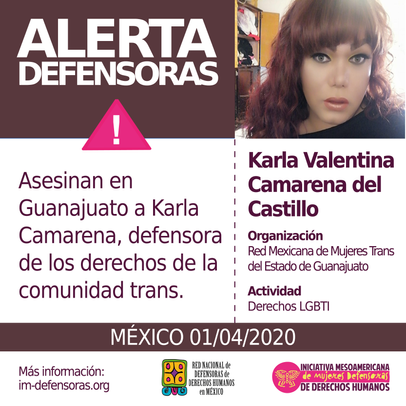 Desde la IM-Defensoras y la Red Nacional de Defensoras de Derechos Humanos en México repudiamos el transfeminicidio de Karla Camarena y expresamos nuestra solidaridad a sus familiares y a la comunidad LGBTI de Guanajuato.