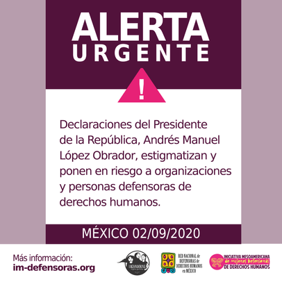 Desde la IM-Defensoras, la Red Nacional de Defensoras de Derechos Humanos en México y Luchadoras exigimos la rectificación por parte del presidente López Obrador, y que ésta venga acompañada del reconocimiento público al trabajo fundamental que desarrollan las organizaciones y personas defensoras de derechos humanos que históricamente han luchado por la democracia y abierto caminos para la justicia, indispensables en todo procesos de transformación social.