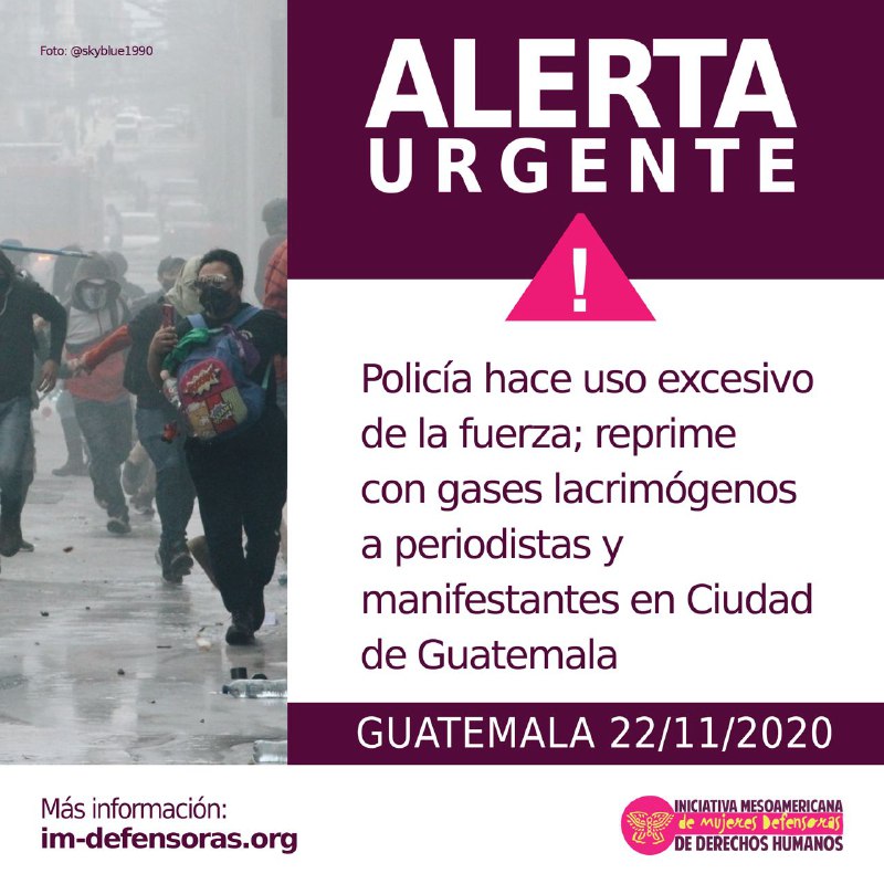Desde la IM-Defensoras, exigimos a la Policía Nacional Civil de Guatemala, que pare la represión y a las autoridades que prioricen la emergencia económica y sanitaria que vive el país. Cualquier medida debe colocar primero a las personas y sus derechos, no los intereses de grandes corporaciones.