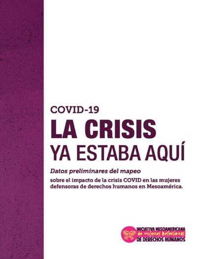 Datos preliminares del mapeo sobre el impacto de la crisis COVID en las mujeres defensoras de derechos humanos en Mesoamérica.