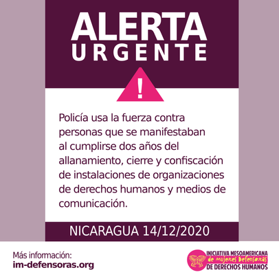 Este lunes la Policía Nacional ha usado la fuerza para reprimir a un grupo de personas que se habían concentrado frente a las instalaciones del periódico Confidencial para expresar su rechazo ante los hechos sucedidos hace dos años, el 14 de diciembre de 2018, cuando la Policía allanó de forma violenta estas instalaciones, así como las del Instituto de Liderazgo de las Segovias, la Fundación POPOL NA, el Centro Nicaragüense de los Derechos Humanos (CENIDH), la Fundación del Río, IPADE y el Centro de Información y Servicios de Asesoría en Salud (CISAS).