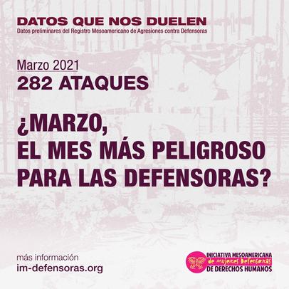 Sólo en marzo de 2021, la IM-Defensoras registró 282 ataques contra defensoras de derechos humanos en Mesoamérica.