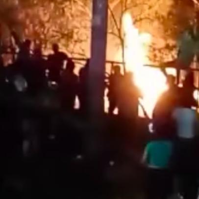 Esta noche del 16 de marzo en Tegucigalpa, miembros y simpatizantes del Partido Nacional causan disturbios afuera de la Corte Suprema de Justicia y prenden fuego al Campamento Feminista Viva Berta.