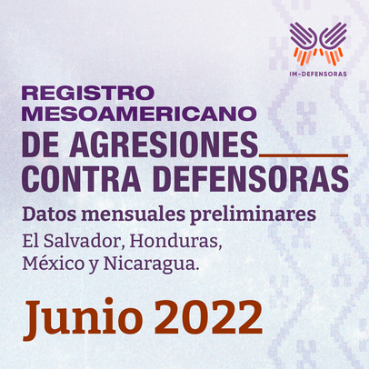 Registro Mesoamericano de Agresiones contra Defensoras: Junio 2022 – Datos mensuales preliminares.