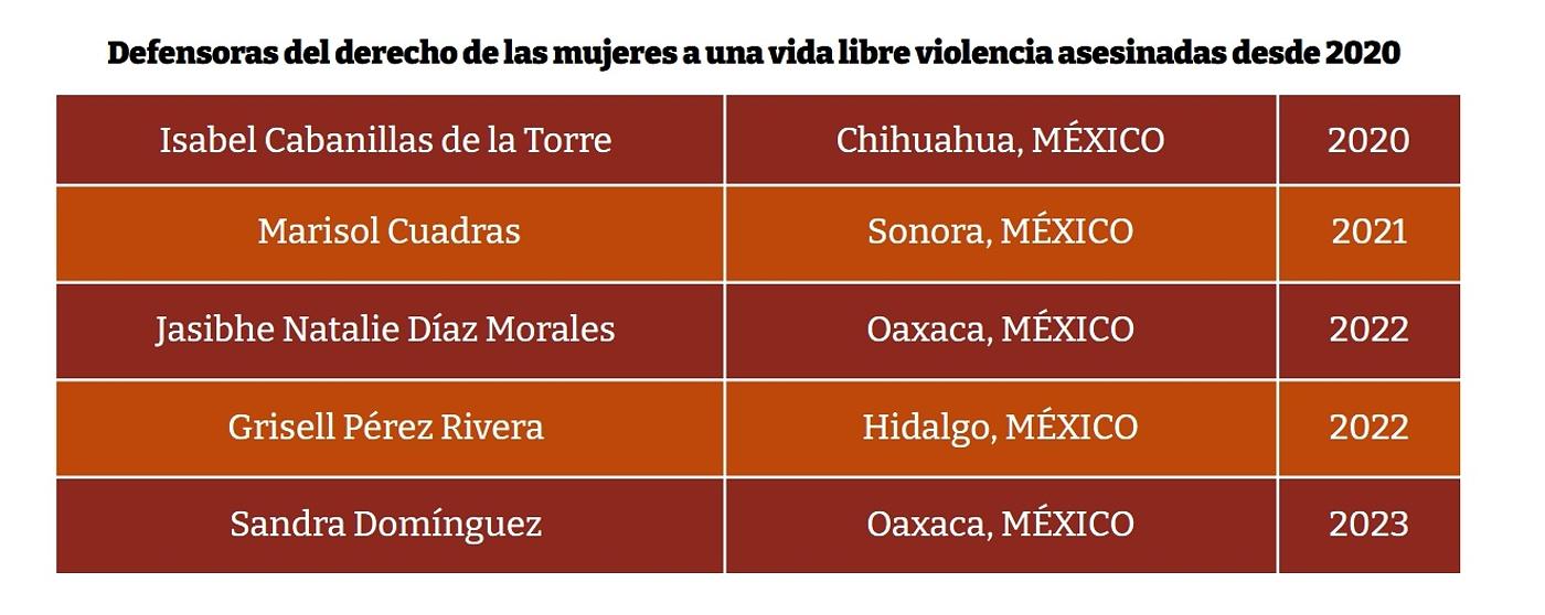 Desde 2020, al menos 5 compañeras que defendían el derecho de las mujeres a una vida libre de violencia han sido asesinadas.