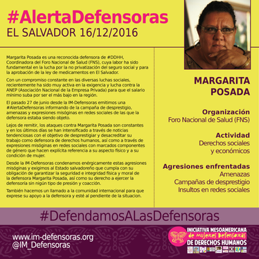 #AlertaDefensoras EL SALVADOR / Campaña de desprestigio contra Margarita Posada, Coordinadora del Foro Nacional de Salud (FNS)
