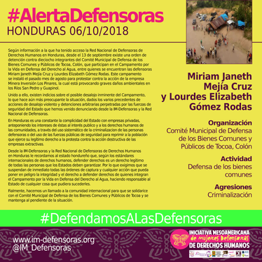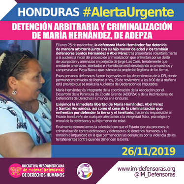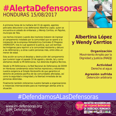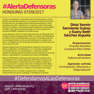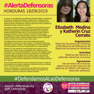 #AlertaDefensoras HONDURAS / Detención arbitraria y posterior liberación de GABRIELA DÍAZ Y KAREN MEJÍA