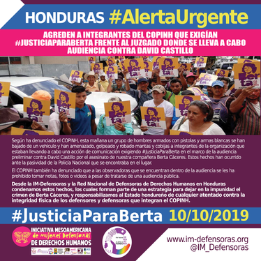 #AlertaDefensoras HONDURAS / Atacan a integrantes del COPINH y de otras organizaciones nacionales e internacionales participantes en el Encuentro "Berta Cáceres Vive"