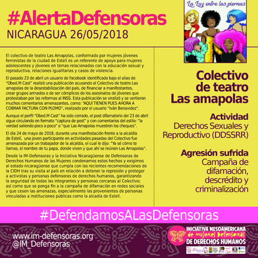 26 de mayo de 2016 - Desde hace 18 años Arelys del Carmen Cano Meza es defensora de los derechos humanos de las personas que conviven con el VIH. Actualmente es la representante para América Latina de la Comunidad Internacional de Mujeres con VIH (ICW - Latina). En la madrugada del domingo 20 de marzo, el vehículo en el cual se transportaba Arelys con sus familiares fue detenido en un control de tránsito en Manuagua. Los policias ordenaron que todas las personas se bajaran del mismo y señalaron que lo enviarían al depósito municipal por supuesto aliento alcohólico del conductor. Arelys reclamó a los policias que estaban haciendo un procedimiento arbitrario, ya que primero tienen que hacer la prueba del alcoholimetro que lo confirme, estos la ofendieron y, seguidamente, en respuesta a la exigencia de la defensora de que se respetasen sus derechos, procedieron a detenerla arbitrariamente. Ante las quejas de la defensora por el abuso policial, un grupo de policías se abalanzó contra ella, la tiraron al suelo, la agredieron físicamente y la esposaron arrastándola hacia la patrulla policial, donde además de recbir una bufetada en la cara siguió siendo objeto de trato denigrante y burlas. A continuación la trasladaron a la Delegación de Policía. La agresión fue grabada por familiares y otras personas presentes, quienes posteriormente fueron obligadas a borrar las grabaciones y amenazados de ser también detenidos. Durante la detención, que duró 2 días, no le permitieron informar a sus familiares y la continuaron sometiendo a trato cruel, degradante e inhumano. Entre otros abusos le privaron de sus medicamentos, querían someterla a desnudare para hacer sentadillas y luego ser objeto de un registro vaginal, al igual que el resto de mujeres detenidas. En la tarde del lunes 21 fue liberada tras una campaña de denuncia en Redes sociales y diversos medios de comunicación. Dos semanas después tuvo noticias de que el Ministerio Publico la había acusado por el delito de Obstrucción de funciones y en la audiencia inicial se admitió la misma y se programó el juicio para el próximo 27 de mayo. Cabe señalar que la acusación responsabiliza a Arelys de haber agredidos a los oficiales de policía y amenazarlos de contagio del VIH. Desde la IM-Defensoras condenamos estos abusos y el trato degradante, cruel e inhumano de que ha sido víctima la defensora y exigimos a las autoridades nicaragüenses que garanticen su seguridad y su derecho a un proceso judicial apegado a ley, poniendo fin a su criminalización y depurando responsabildades para que hechos como los descritos no se vuelvan a repetir.