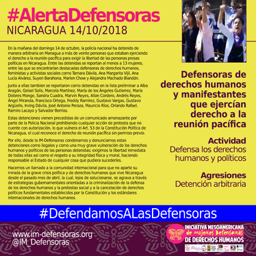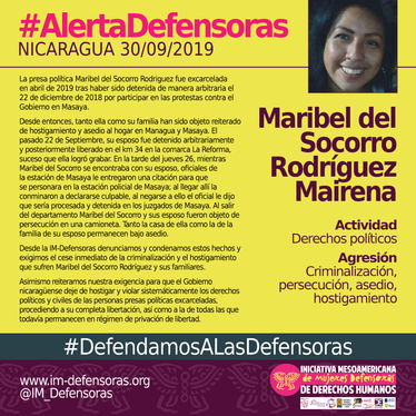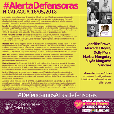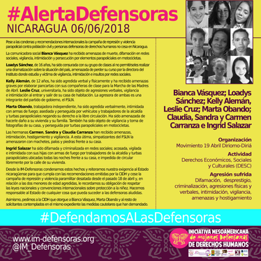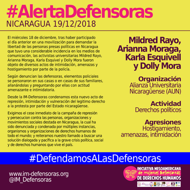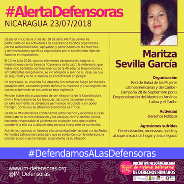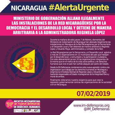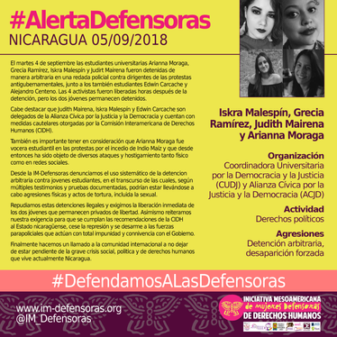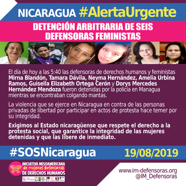 #AlertaDefensoras NICARAGUA / Detención arbitraria de integrantes de la Iniciativa Nicaragüense de Defensoras y Campaña 28 de Septiembre