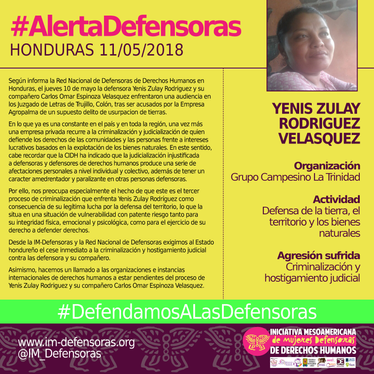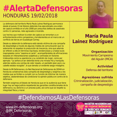 #AlertaDefensoras HONDURAS / Criminalizan a la defensora Irma Lemus