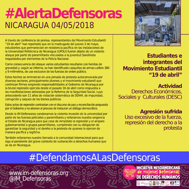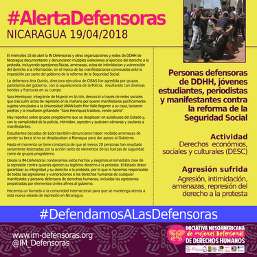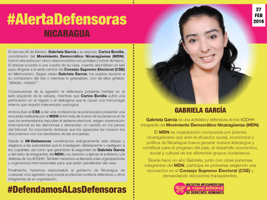 #AlertaDefensoras NICARAGUA / Agresión física contra la activista Gabriela García y su compañero Carlos Bonilla, integrantes del Movimiento Democrático Nicaragüense (MDN)