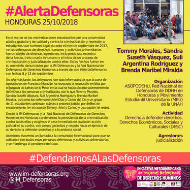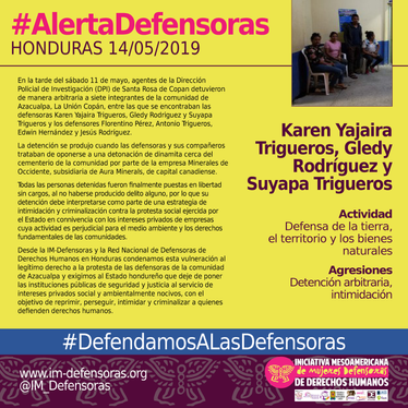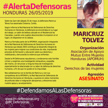 #AlertaDefensoras HONDURAS / Sonia Isabel Gáleas, Gerardina Santos Hernández y Norma Suyapa Herrera