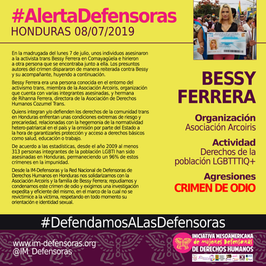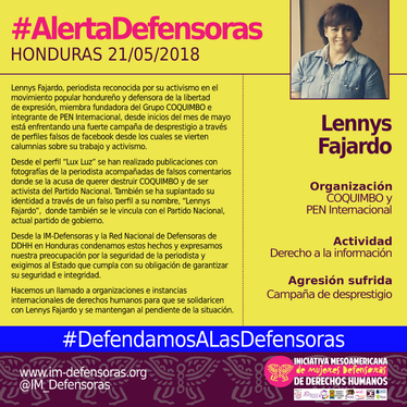 #AlertaDefensoras Lesbia Janeth Urquía 07072016