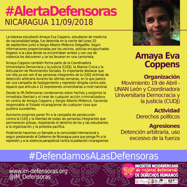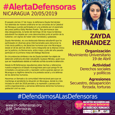 #AlertaDefensoras NICARAGUA / Detención arbitraria; trato degradante, cruel e inhumano; y criminalización contra Arelys Cano Meza