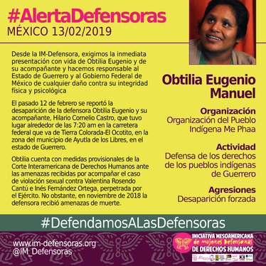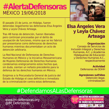 #AlertaDefensoras MÉXICO / Rita Amador, Meztli Sarabia e integrantes de "UPVA 28 de Octubre"