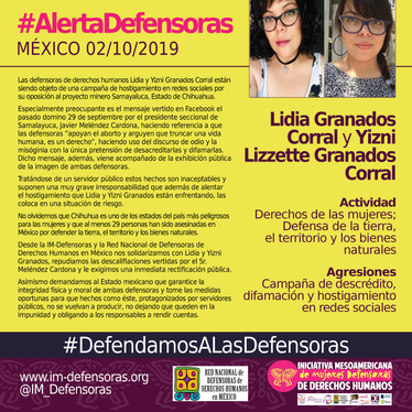 Desde la Red Nacional de Defensoras de Derechos Humanos en México y la IM-Defensoras nos preocupa la sistematicidad e incremento de las amenazas y hostigamientos que ponen en riesgo la vida de María Luisa Estrada.