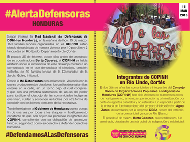 Postal #AlertaDefensoras COPINH actualizacion 16032016