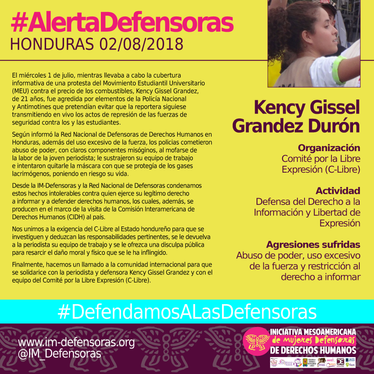 La Red Nacional de Defensoras de Derechos Humanos en Honduras nos solidarizamos con la defensora Jessica Sánchez y denunciamos el abuso de autoridad que la Policía Nacional ejecuta a través de los retenes policiales para hostigar a personas defensoras.