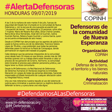 #AlertaDefensoras HONDURAS / Uso excesivo de la fuerza contra Integrantes Empresa Campesina Nueva Ebenezer