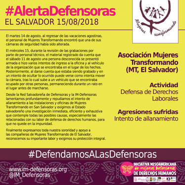 #AlertaDefensoras EL SALVADOR / PREOCUPA SITUACIÓN DE VIOLENCIA, AMENAZAS Y AGRESIONES QUE ENFRENTAN ORGANIZACIONES Y PERSONAS DEFENSORAS DE #DDHH Y #LGTBI