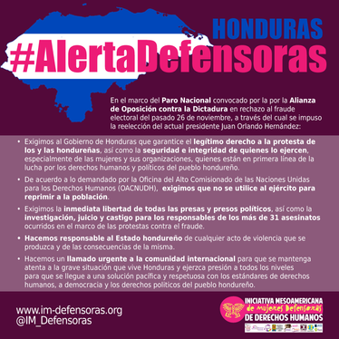 [Alerta Defensoras] HONDURAS / Durante jornada electoral nos mantendremos vigilantes ante cualquier situación de violencia contra defensoras y sus comunidades.