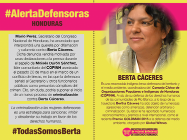 Red de Defensoras de DDHH de Honduras: ALERTA PÚBLICA - Exigimos la inmediata libertad de Berta Cáceres