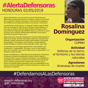 #AlertaDefensoras HONDURAS / Amenazas e intimidación contra Ana Mirian Romero, defensora del territorio integrante del MILPAH y del Consejo Indígena de San Isidro Labrador