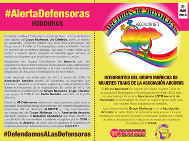 #AlertaDefensoras HONDURAS / Intento de asesinato contra integrante del Grupo Muñecas de Mujeres Trans de la Asociación Arcoiris