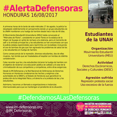 ‪#‎AlertaDefensoras‬ HONDURAS / Represión del derecho a la protesta del Movimiento estudiantil de la UNAH