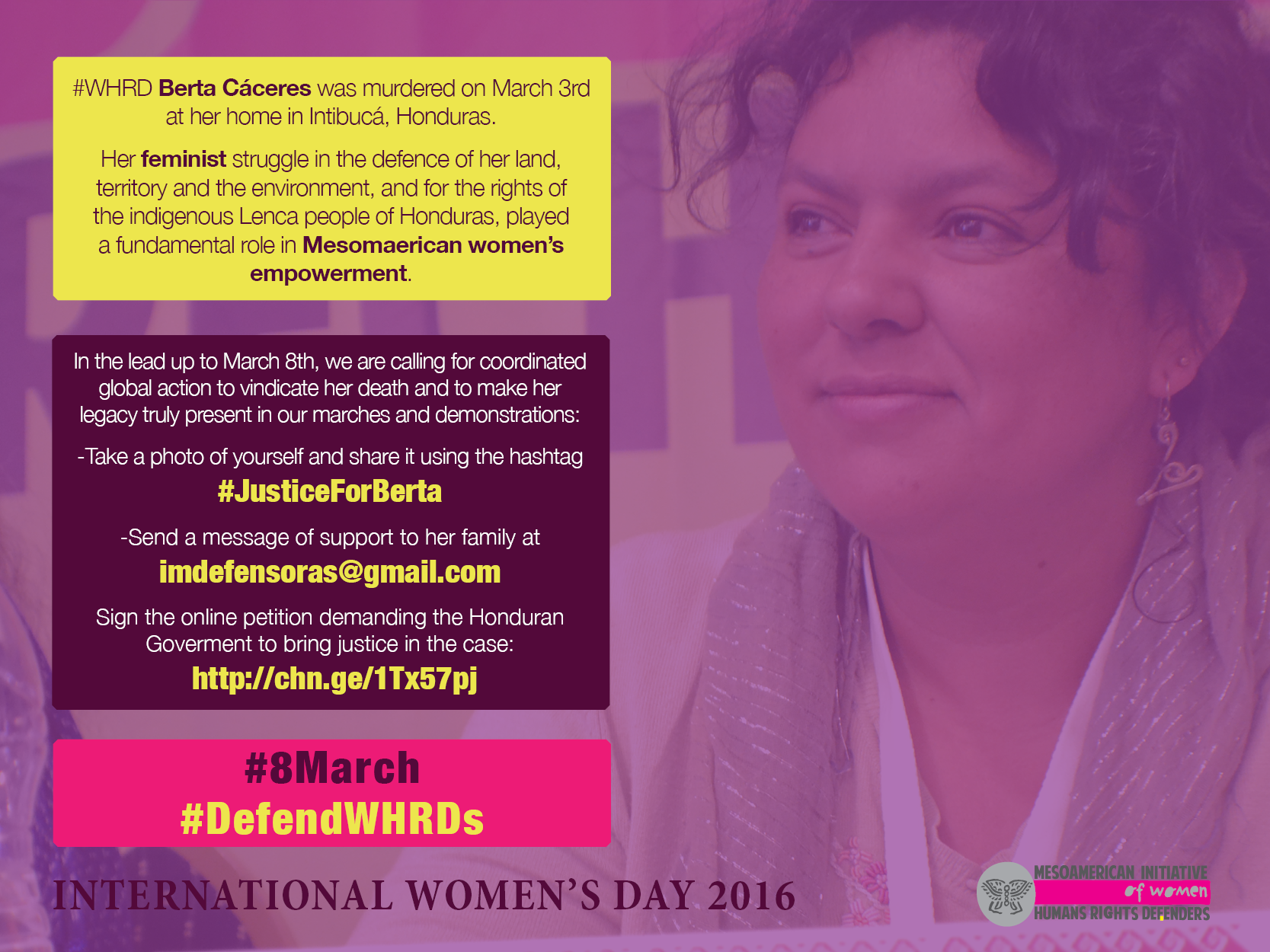 CALL TO ACTION #8March: #Justice For Berta