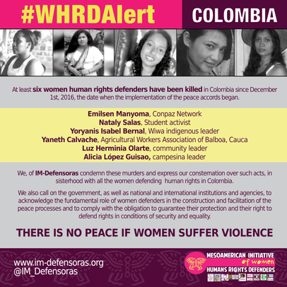 At least six women human rights defenders have been killed in Colombia since December 1st, 2016, the date when the implementation of the peace accords began.