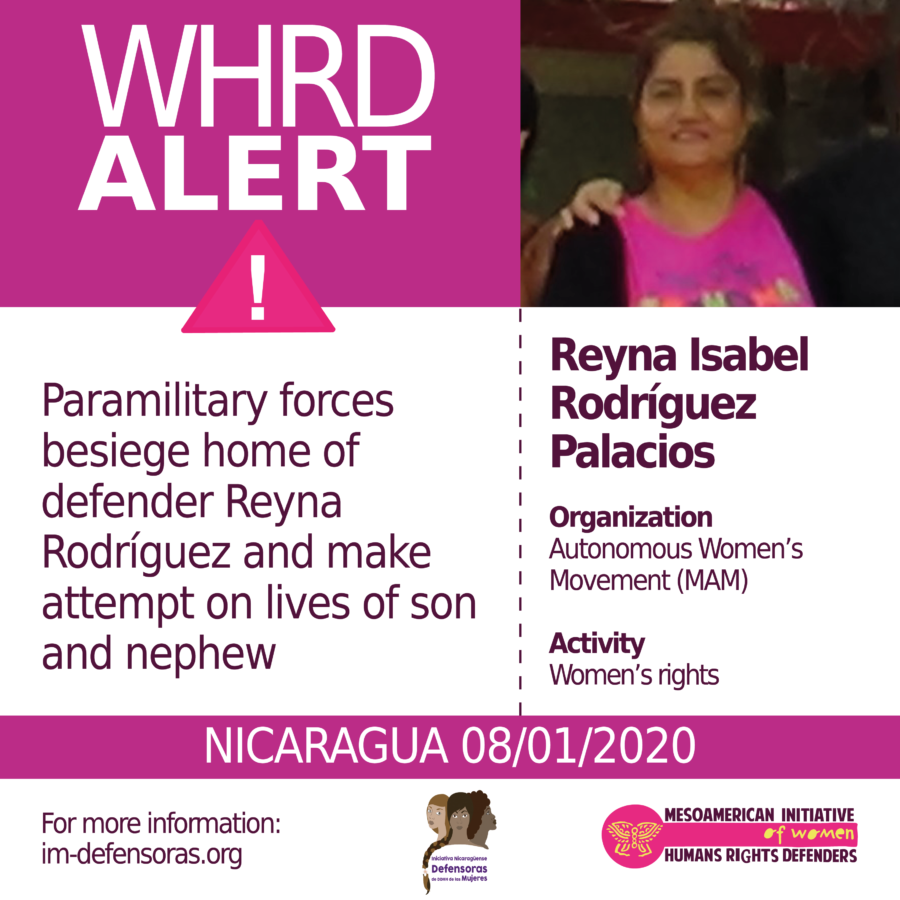 Likewise, we demand an end to the besiegement and harassment of Reyna Rodríguez (who was granted precautionary measures by the IACHR in September of 2018), and we hold the Nicaraguan government responsible for any attempt whatsoever against her physical, moral and patrimonial integrity.