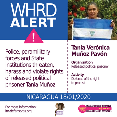 We of IM-Defensoras demand an end to the harassment of Tania Muñoz and hold the Nicaraguan government responsible for any harm done to her physical, moral or patrimonial integrity or to that of any member of her family.