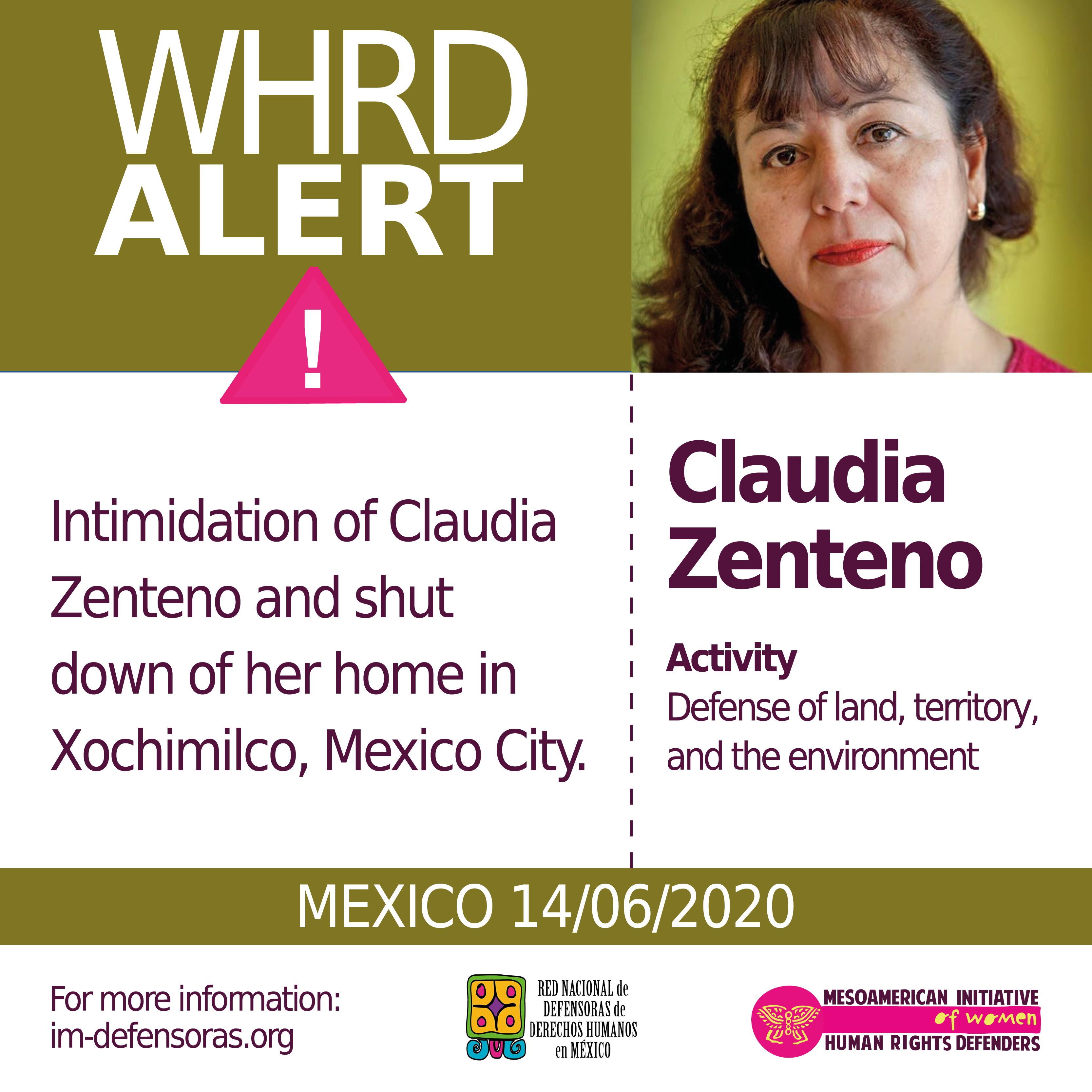 We of IM-Defensoras and the National Network of Women Human Rights Defenders in Mexico denounce these actions, which we consider as intimidation with the objective to inhibit and sanction the important work of defending the territory that Claudia Zenteno has been carrying out for twenty years in Xochimilco.