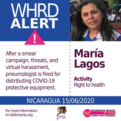 We of IM-Defensoras and the Nicaraguan Initiative of Women Human Rights Defenders denounce the dismissal of Dr. María Lagos as improper and repudiate the threats, accusations and disrepute that she and her family face. We make the Nicaraguan State responsible for any attempt against her integrity.