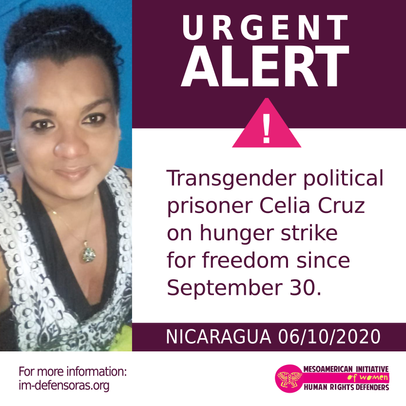Since her arrest on April 21, 2020, after participating in the live transmission of a demonstration on the Isle of Ometepe to celebrate the second anniversary of the peaceful insurrection against the government, Celia has been the target of numerous abuses. She has received death threats and other forms of aggression in prison in addition to the continuous acts of humiliation that she suffers for being a transgender woman and political prisoner.