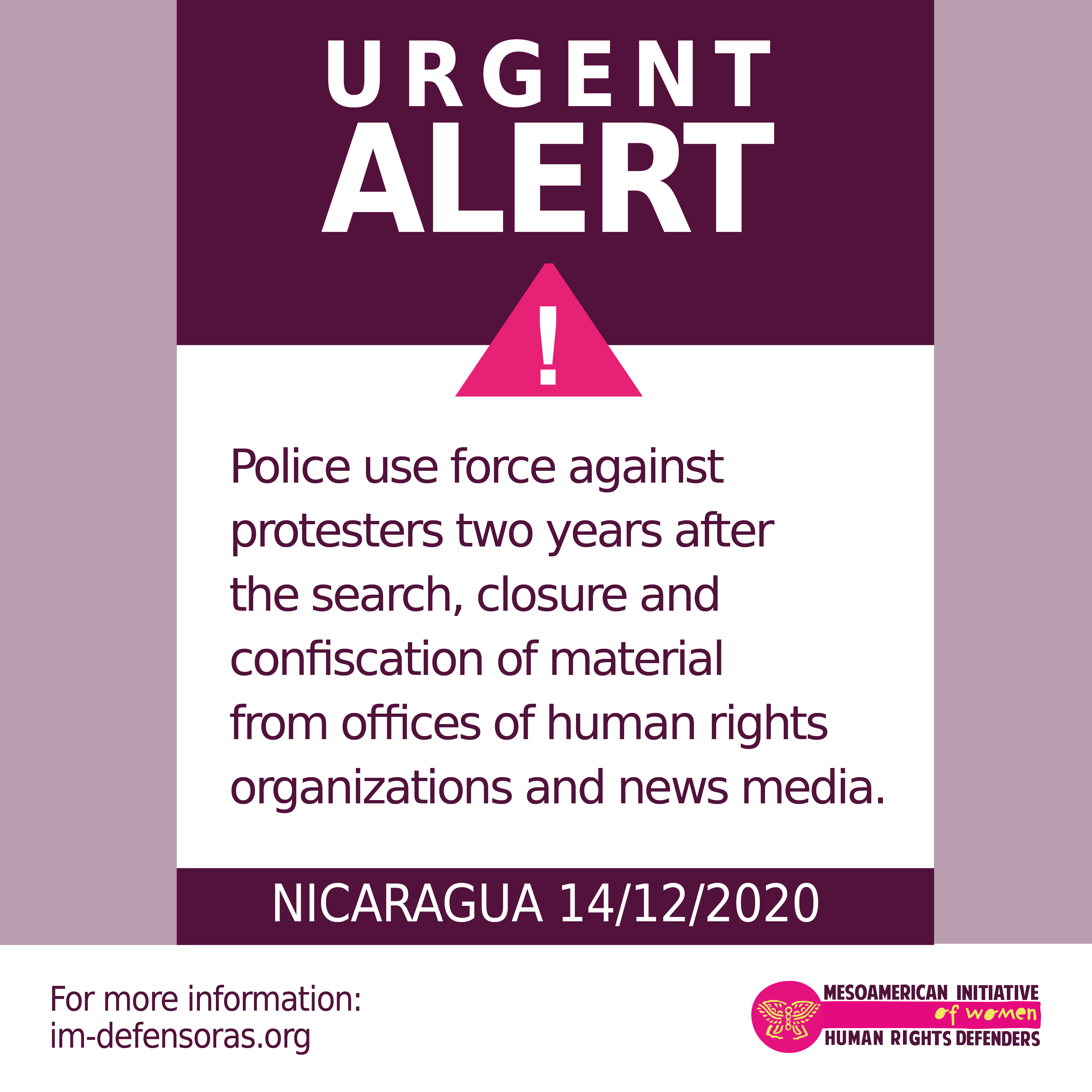 We of IM-Defensoras condemn this aggression and reiterate our call on the international community to stay alert to the situation of human rights violations, political persecution and repression suffered by the news media and organizations defending human rights in Nicaragua.