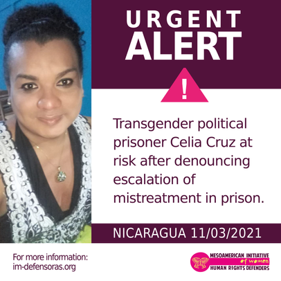 Since her arrest, which occurred on April 21, 2020, after she participated in and aired a protest on Ometepe Island, and her subsequent confinement in a prison exclusively for men, Celia has been the victim of discrimination and aggression related to her gender identity, including sexual attacks, verbal violence and other forms of symbolic violence.