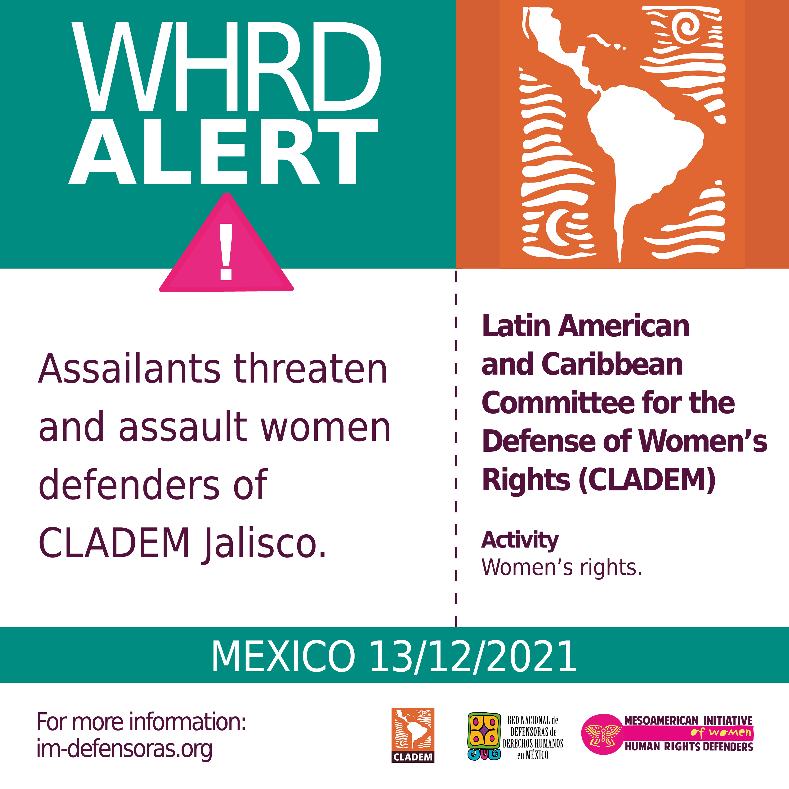 Members of Jalisco’s Latin American and Caribbean Committee for the Defense of Women’s Rights (CLADEM) experienced on November 25th and December 9th two highly serious attacks that placed their lives and personal integrity at risk.